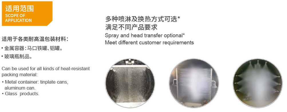 ? 減少蒸汽消耗,蒸汽、霧化后的殺菌水在殺菌釜內(nèi)直接進(jìn)行熱混合,提高升溫降溫的速度。